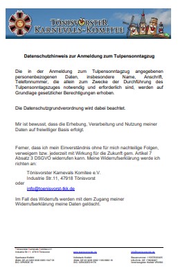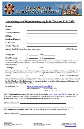 Sollten Fragen hinsichtlich der Teilnahme am Zug bestehen, ist auch hier selbstverständlich das Tönisvorster Karnevals Komitee der richtige Ansprechpartner.