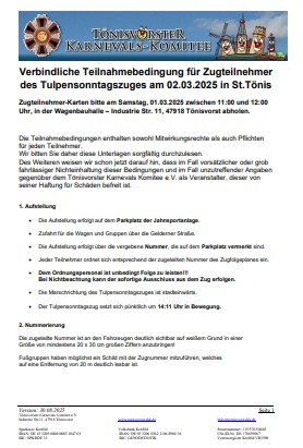 Sollten Fragen hinsichtlich der Teilnahme am Zug bestehen, ist auch hier selbstverständlich das Tönisvorster Karnevals Komitee der richtige Ansprechpartner.